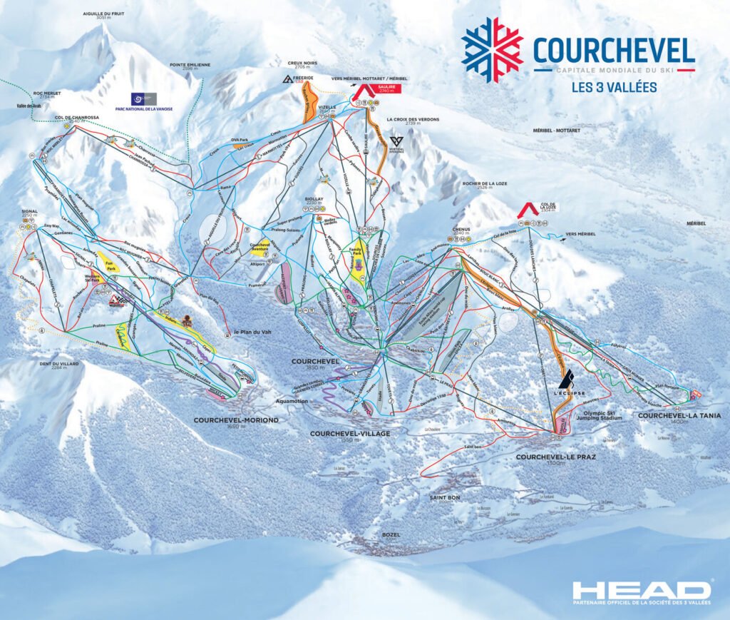 Située au cœur de la vallée de la Tarentaise, en Savoie, Courchevel est une station mythique du massif de la Vanoise, réputée pour son raffinement et son domaine d’exception. Première station française aménagée en site vierge en 1946, elle fait partie intégrante du vaste domaine skiable des Trois Vallées, le plus grand au monde relié skis aux pieds. Organisée autour de cinq villages d’altitudes différentes – Saint-Bon, Le Praz (1300), Village (1550), Moriond (1650) et Courchevel (1850) – elle offre une expérience de montagne à plusieurs visages, allant du charme savoyard à l’élégance alpine la plus prestigieuse.