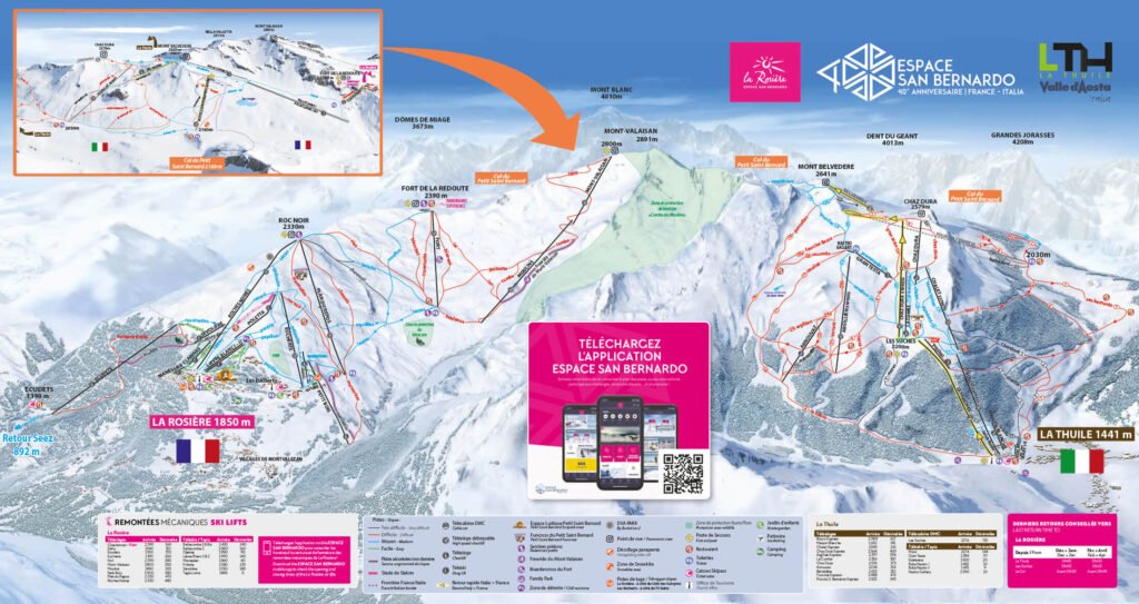 La Rosière est la seule station de Savoie à proposer un domaine skiable international. Reliée à La Thuile, en Italie, elle forme l’Espace San Bernardo, un vaste terrain de jeu de plus de 150 km de pistes. Depuis le secteur du Col du Petit Saint-Bernard, les skieurs peuvent choisir de rester côté français ou de basculer vers la Vallée d’Aoste pour redescendre jusqu’à La Thuile. Le domaine s’étend de 1 850 m à 2 800 m d’altitude et propose 83 pistes réparties entre tous les niveaux, avec une majorité de pistes rouges idéales pour les skieurs intermédiaires et confirmés. La plus longue descente atteint 11 km, offrant une belle variété de paysages et de sensations.
