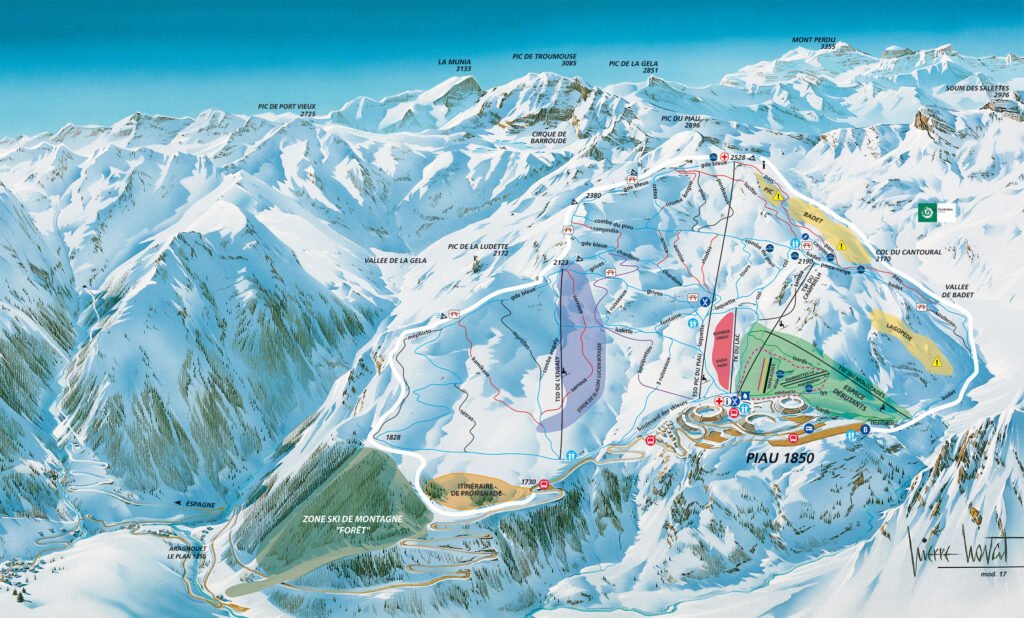 Protégé du vent et des redoux, le secteur skiable s’étend du Pic de Piau à la vallée du Badet sur plus de 100 hectares. L’architecture est intégrée au paysage et toutes les commodités sont accessibles à pied ou par navettes gratuites, permettant de vivre le séjour sans contrainte de circulation. Piau Engaly séduit autant les débutants que les skieurs confirmés, mais aussi les amateurs de glisse nature et de hors-piste encadré.